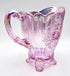 Mosser Dahlia Pink Carnival Glass Pitcher. The Pitcher is approx. 8" tall by 8-1/2" wide, including the handle, sits on a 3-1/2" base and holds 48 ounces TO THE RIM.
