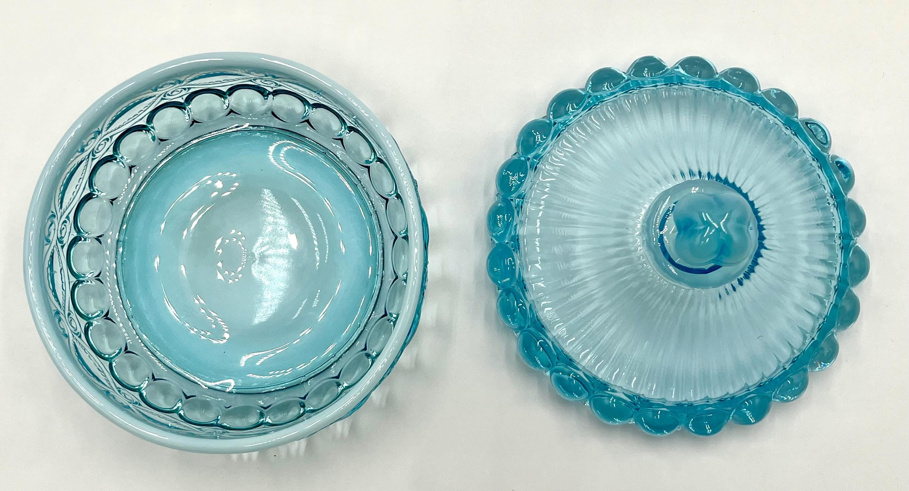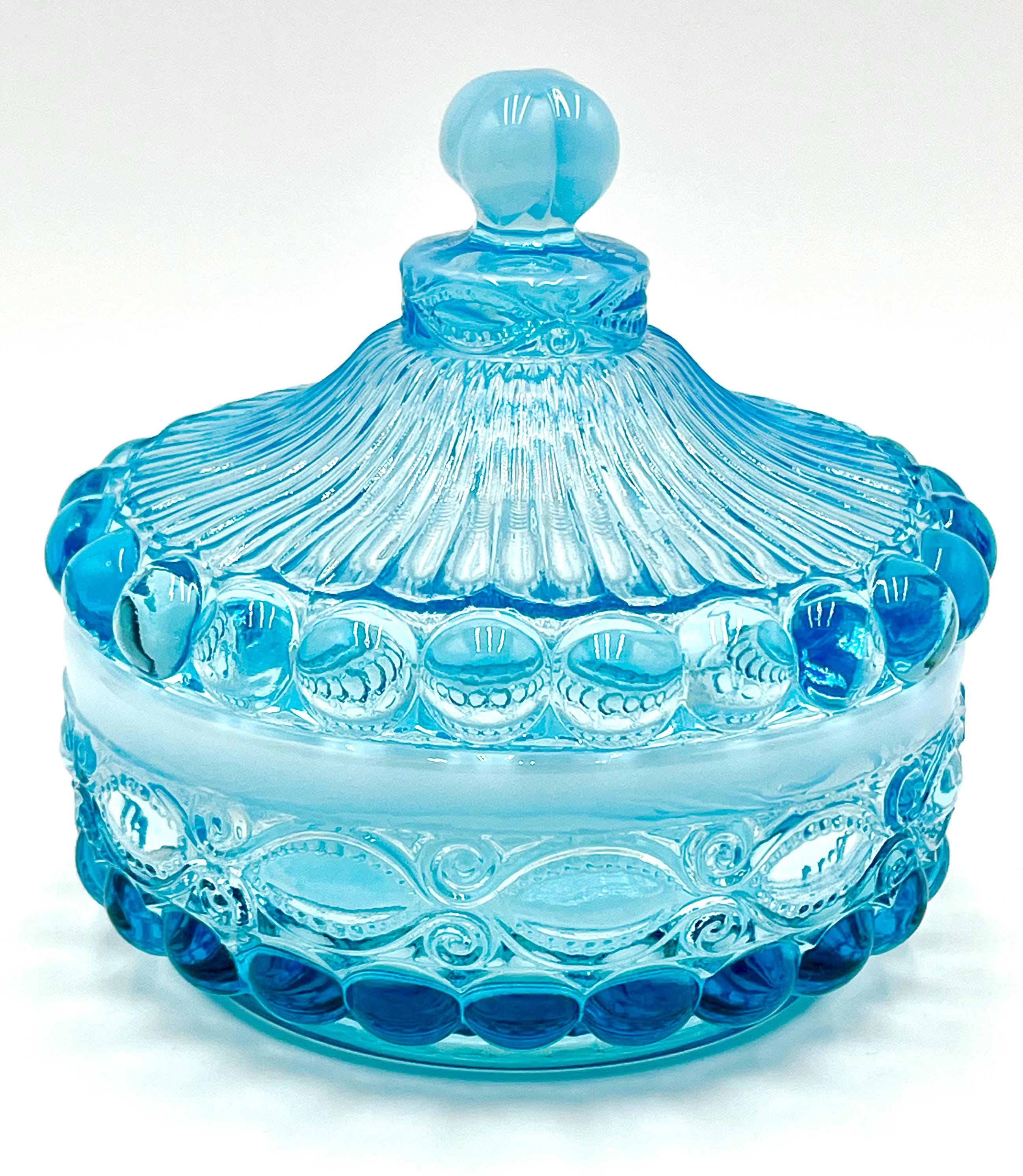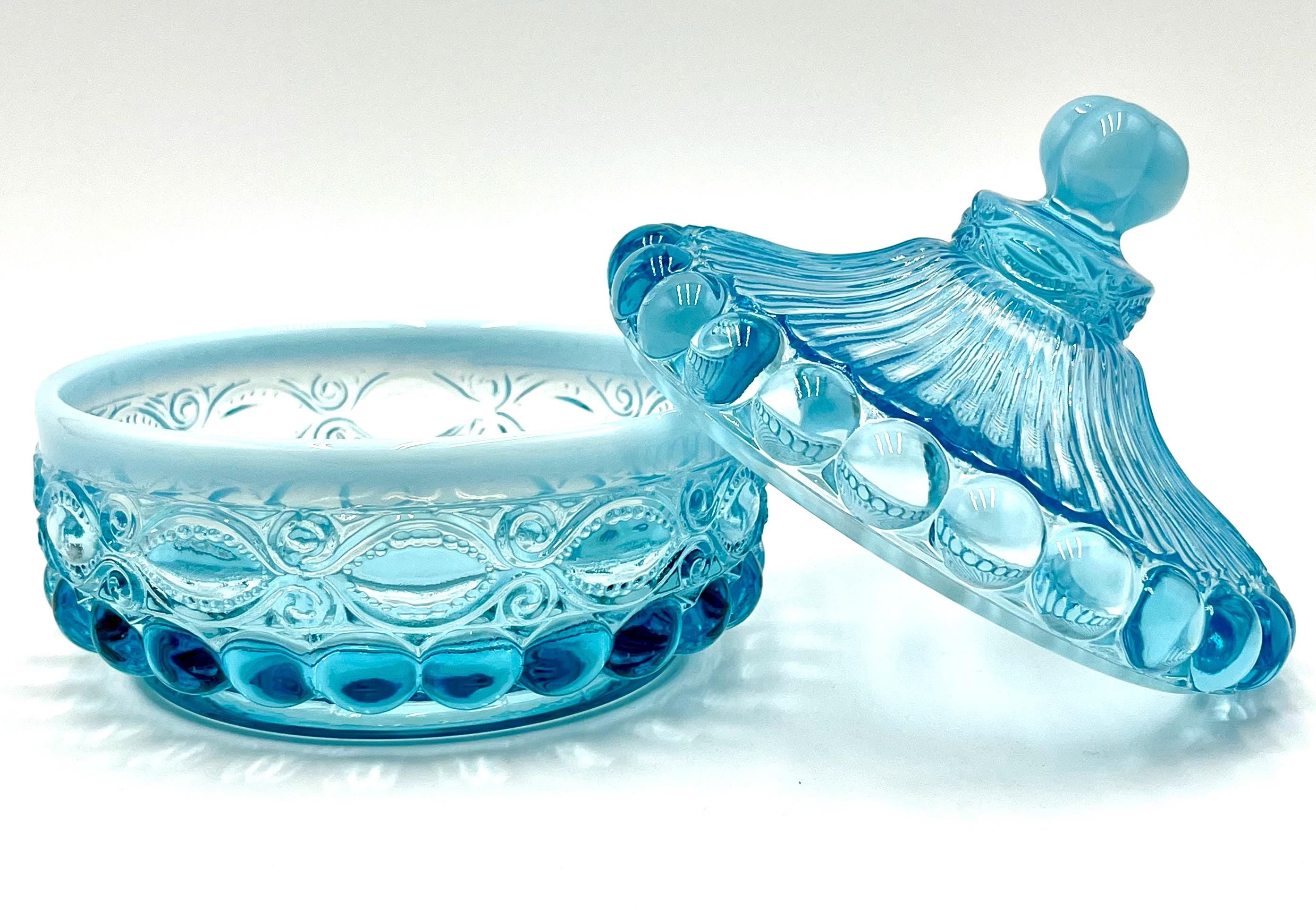 Mosser Glass Eye Winker Covered Candy or Nut Dish Blue Opal, Eye Winkler