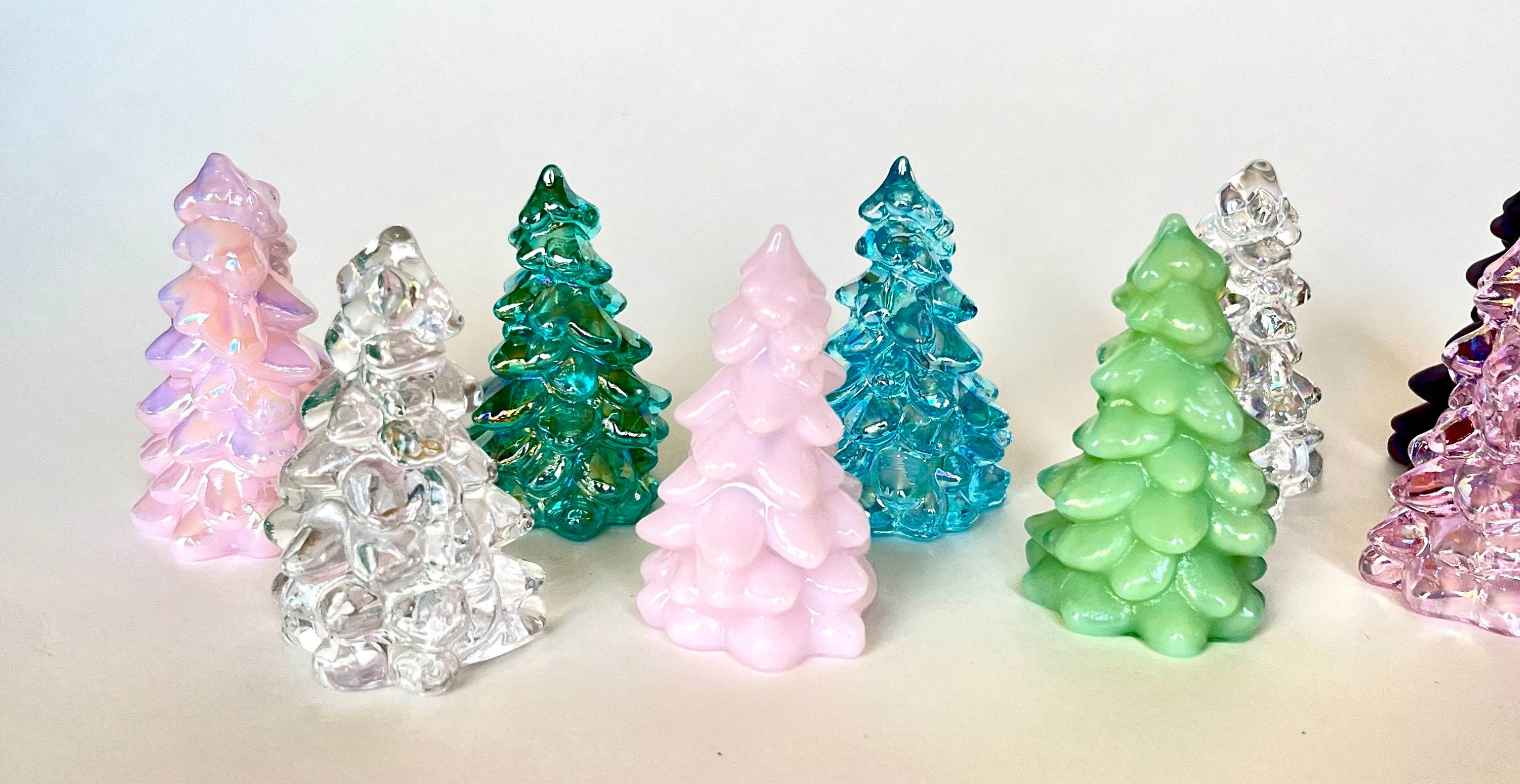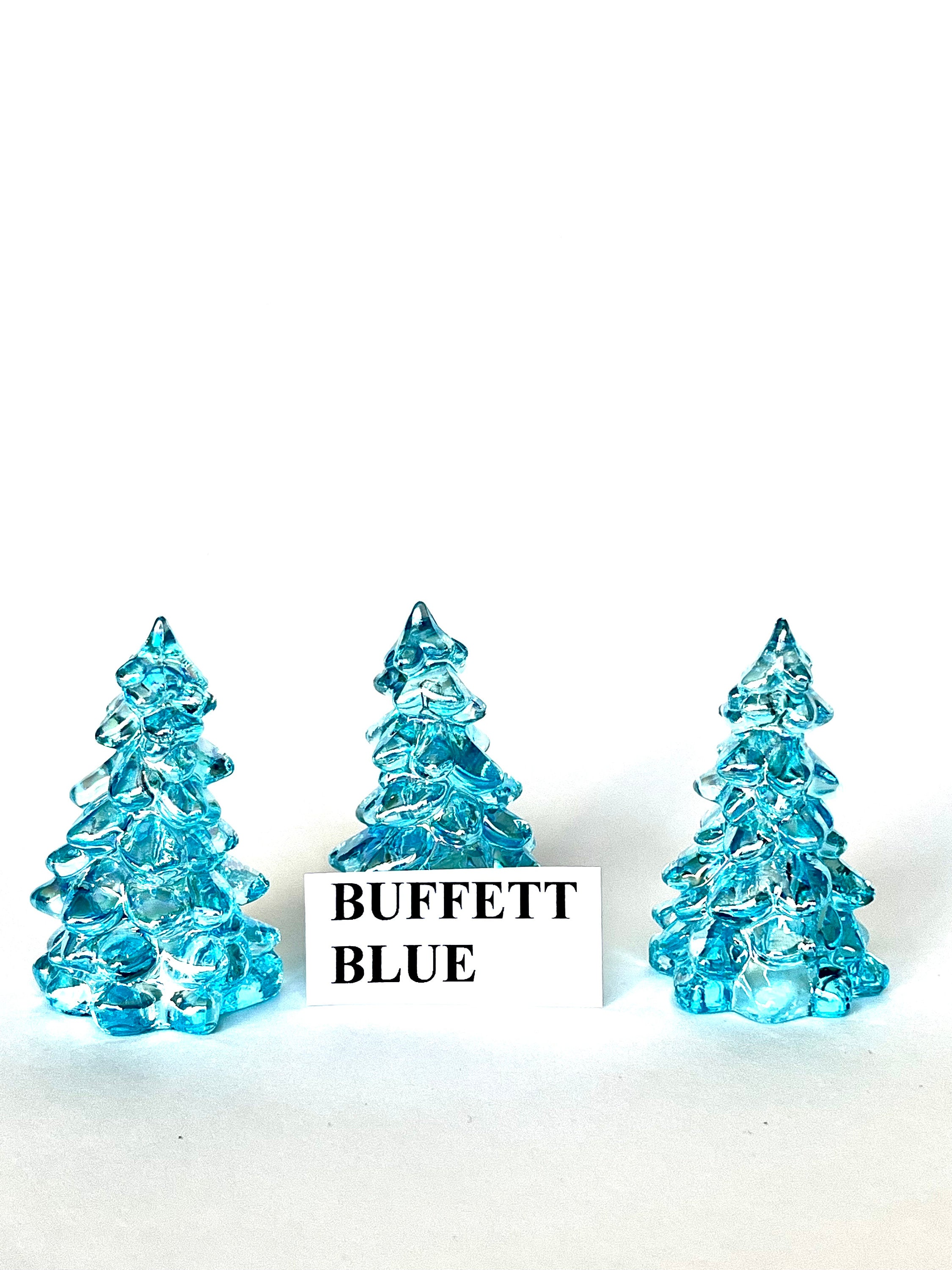 MOSSER GLASS Small 2-1/2" Glass Christmas Trees SET OF THREE TRESS (3). You will receive 3 of the same-colored trees. These beautiful glass trees measure approximately 2-1/2” High and 1-5/8" wide. Contact us for multiple color sets.