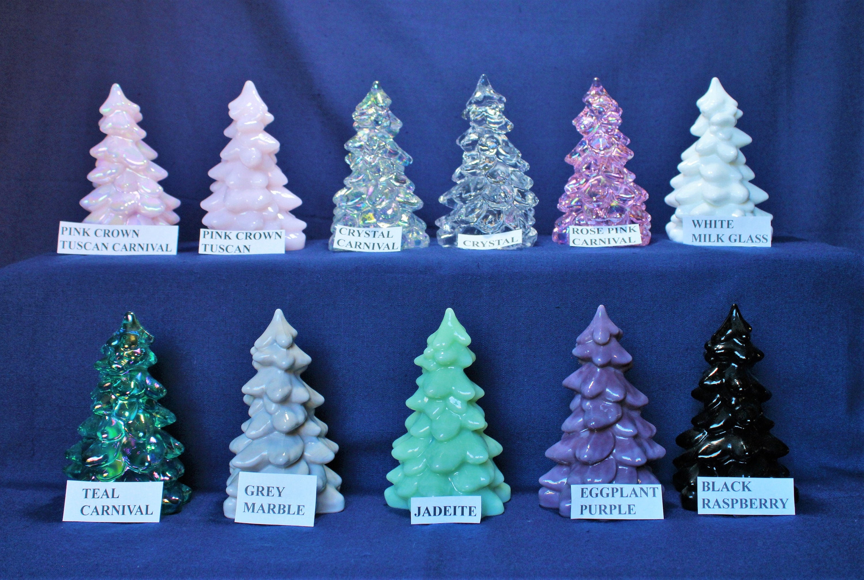 Glass Tree by Mosser Glass 5-1/2" Tree MOSSER GLASS MEDIUM 5-1/2" Glass Christmas Tree. Your Choice of 11 colors, they measure approximately. 5-3/8” High and 3-3/8" wide.