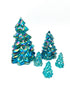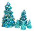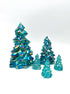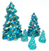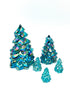 Mosser Glass Trees Teal Carnival, Set of 5 Trees, 1 Large, 1 Medium, and 3 Small Trees. This Buffet Blue Collection of Pressed Glass Pine Trees. THIS SET OF 5 TREES WILL INCLUDE: (1) 8" TREE, (1) 5-1/2" TREE, (3) SMALL TREES. Contact us for any special combination orders.