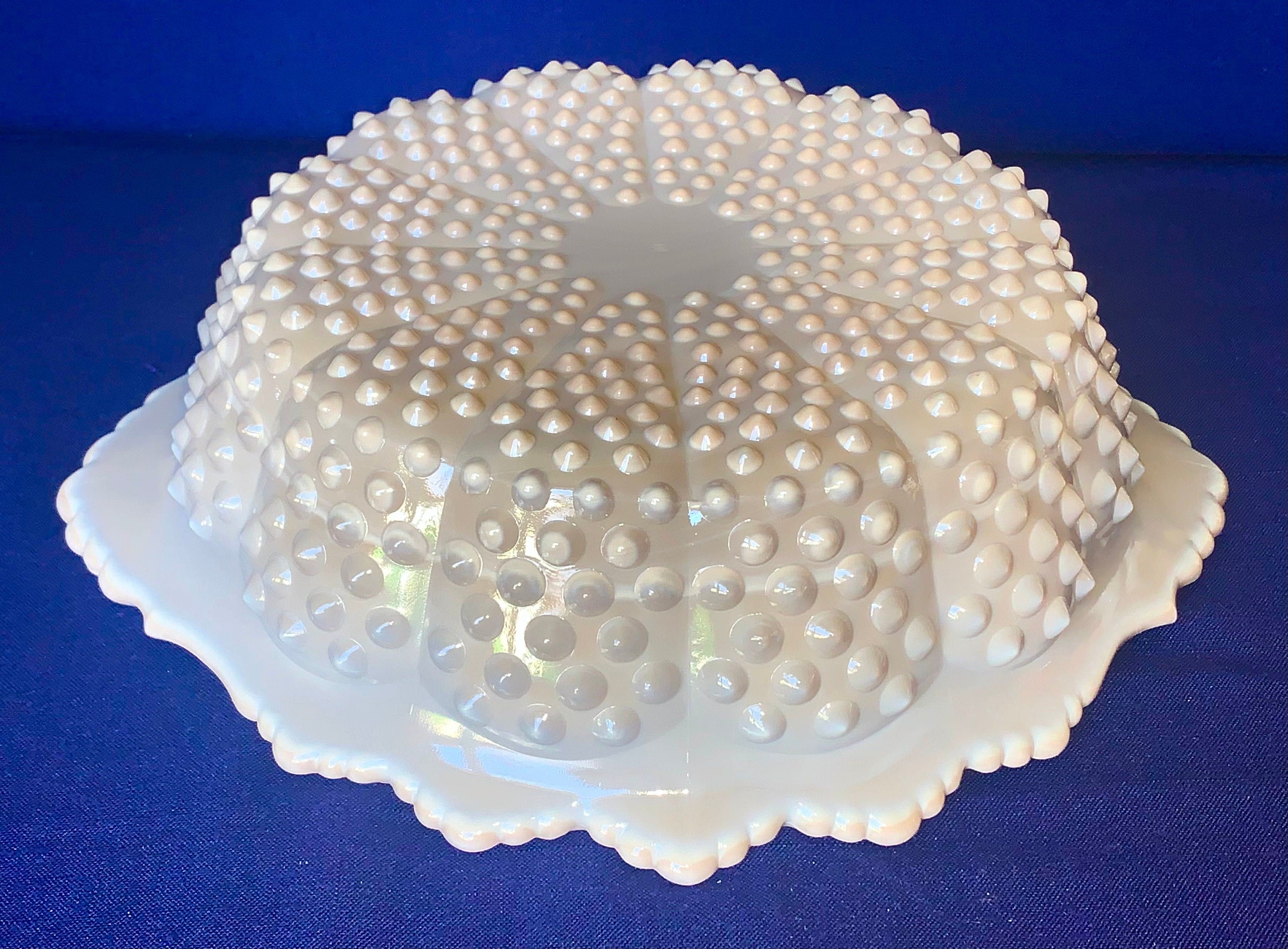 Mosser Glass has been in business since the 1970s and has acquired vintage glass molds by Westmoreland, Fenton, L.G. Wright, and Cambridge. It still makes hand-pressed glass to this day. Each piece has signature marks from the process of molten vats of hot glass to pouring molds, pressing and shaping the piece, reheating to create the shine, the 3-hour cooling process, and the journey to your home.