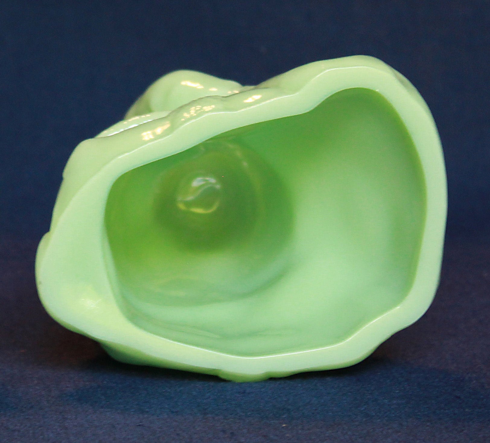 Mosser Kneeling Santa in Jadeite, 6-1/2" high, 4-7/8" long and 3-1/2" deep