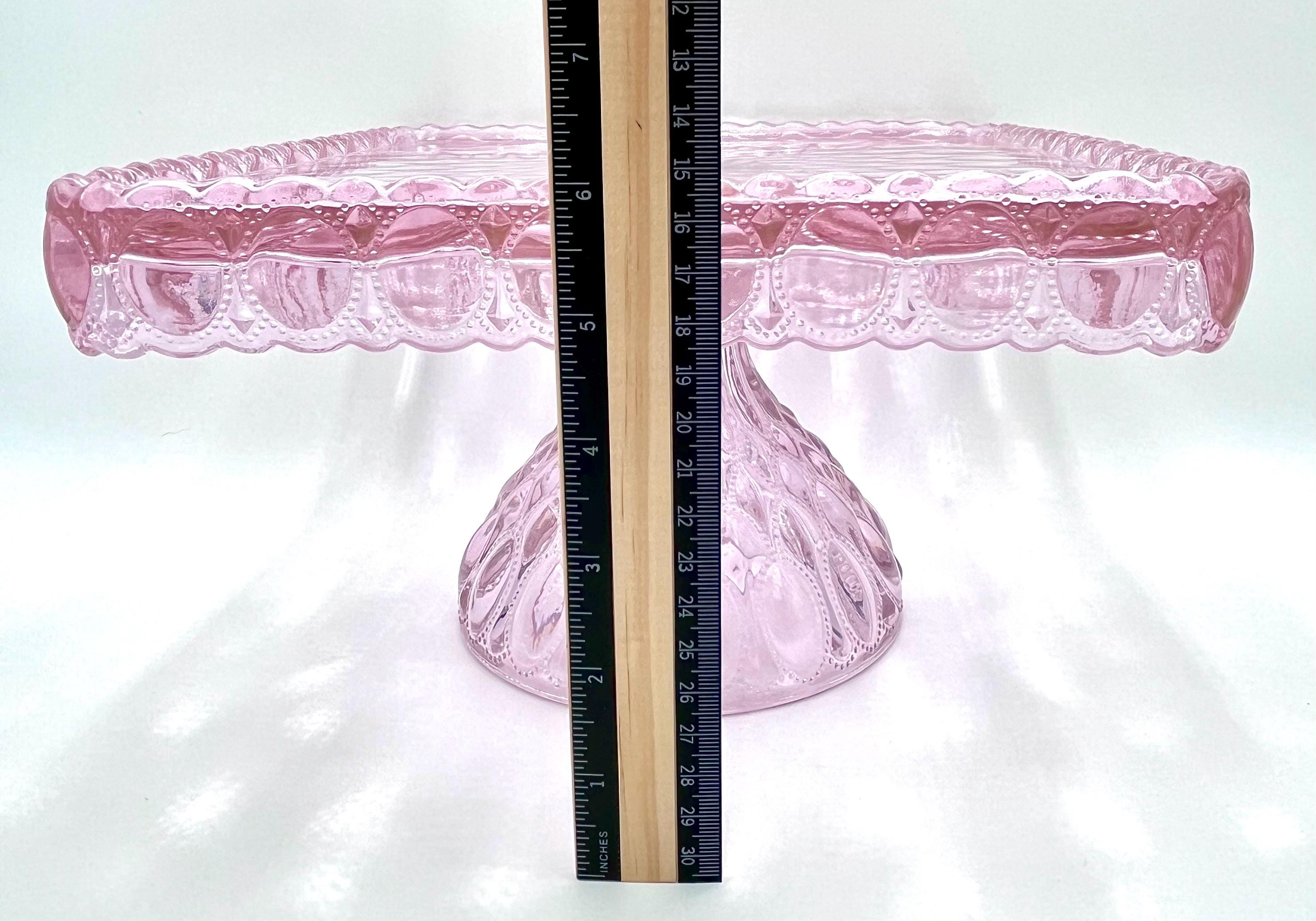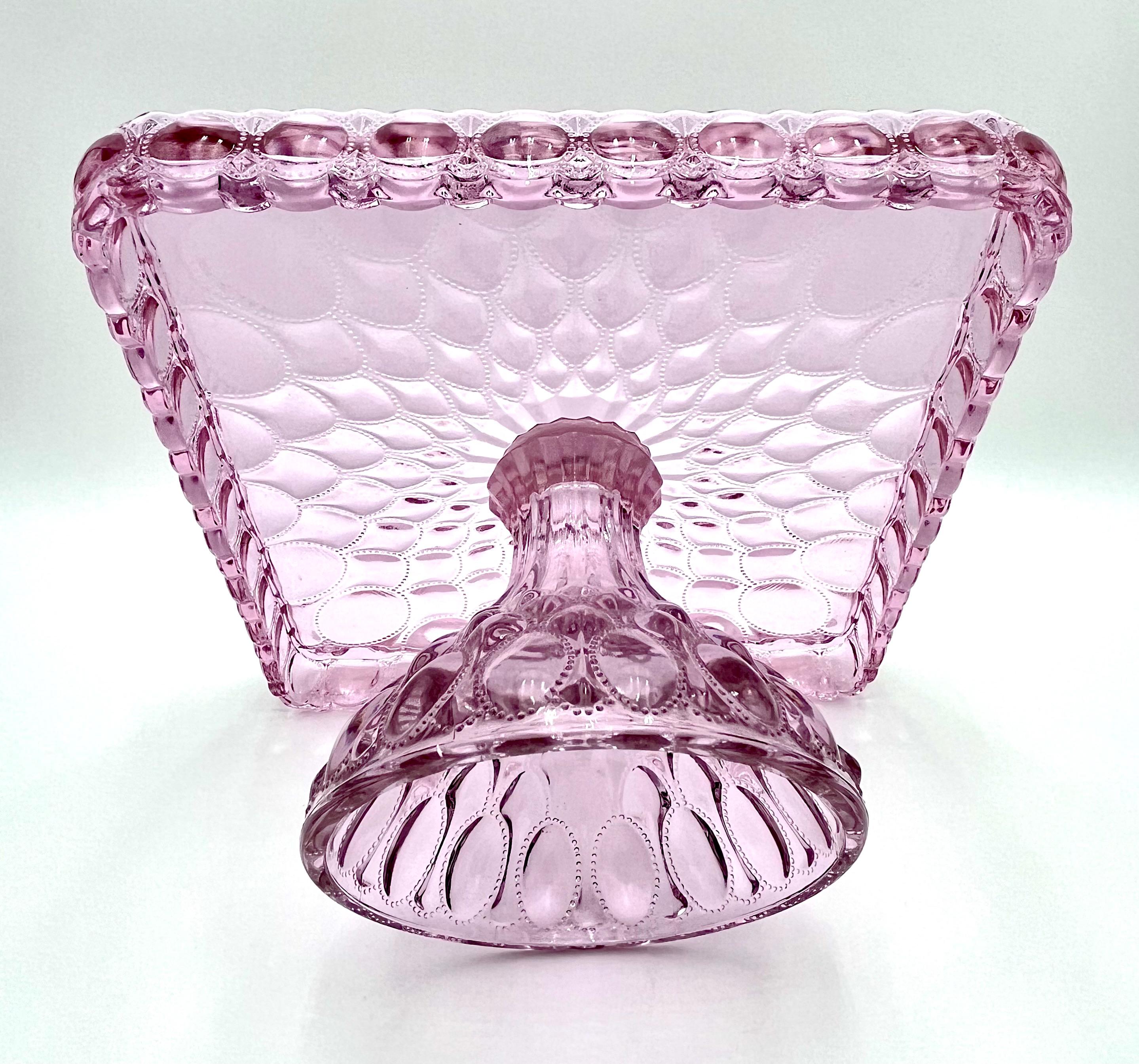 Mosser Pink Cake Stand or Cake Plate 10" Square Elizabeth Quilted Pedestal Cake Plate Wedding, Shower, Cupcakes